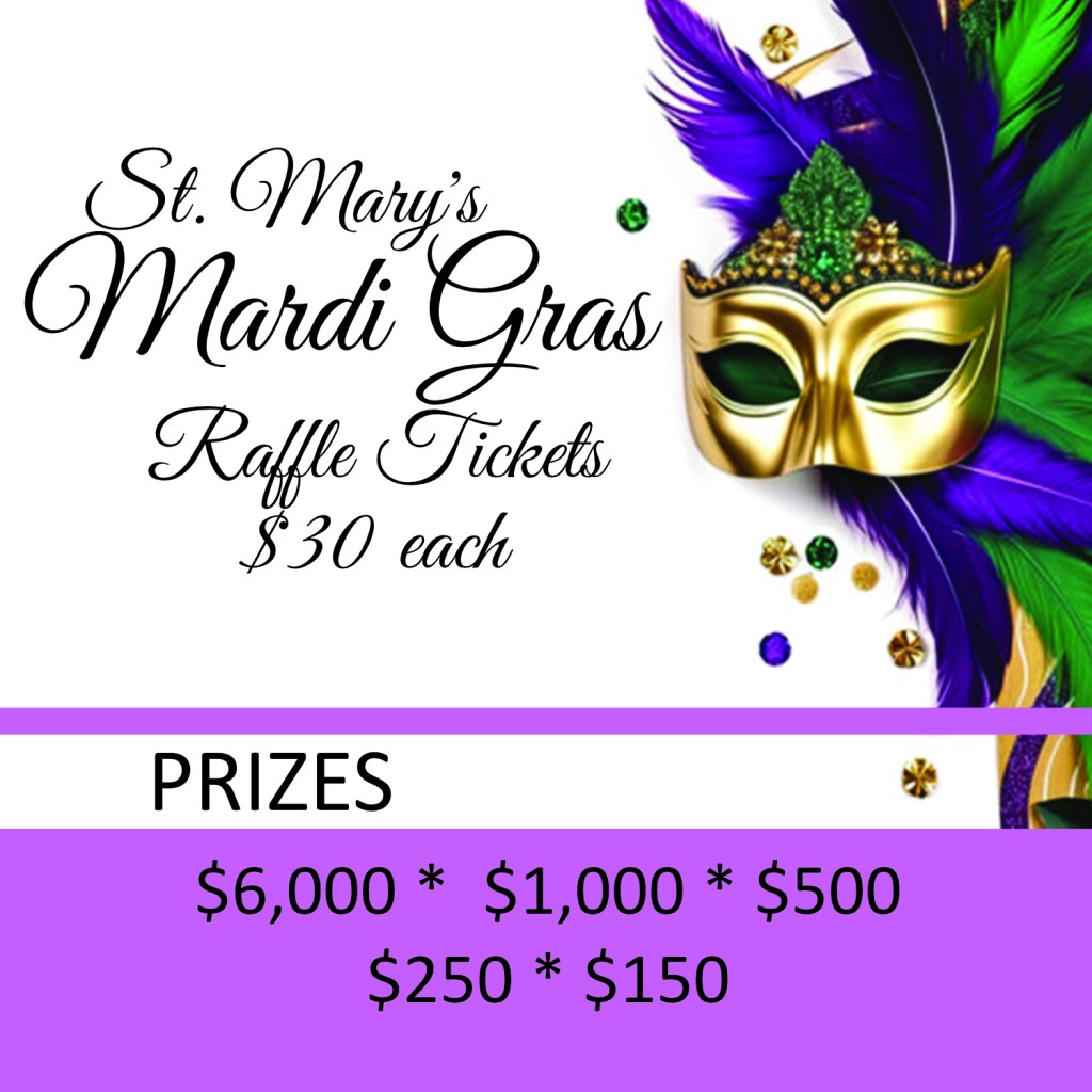 Raffle tickets are available after each Mass, in the school office or from any St. Mary’s student.