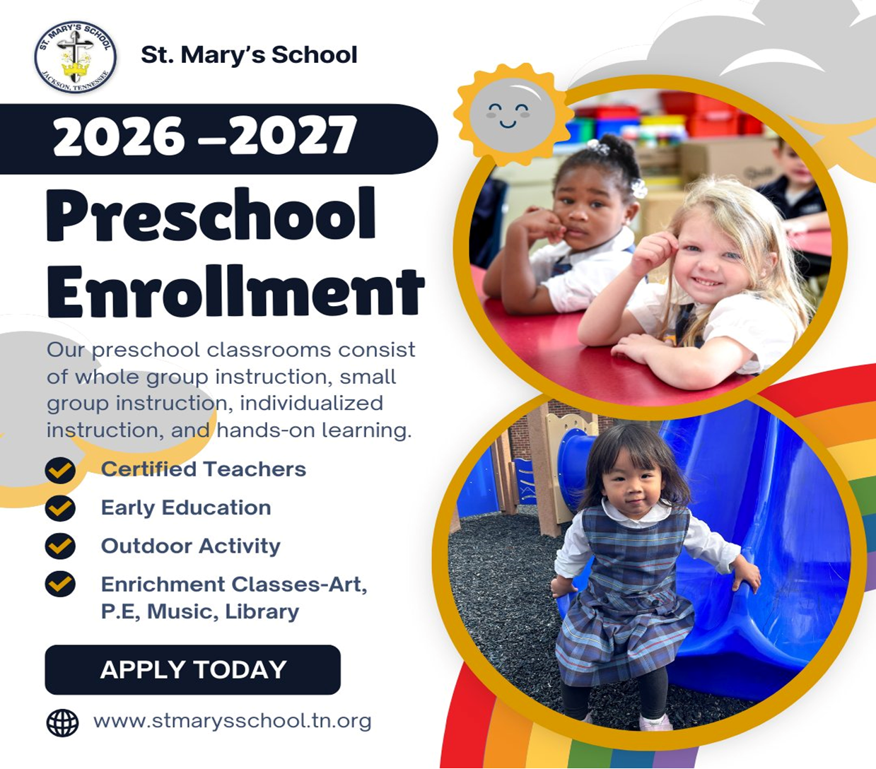 Visit http://www.stmarysschool.tn.org or call 731-226-2423 for more information!