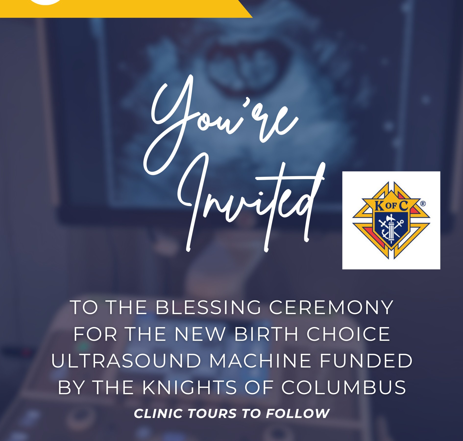 The Knights of Columbus would like to thank St Mary’s Parishioners for generously donating toward Birth Choice’s new Esaote ultrasound machine, which will impact countless lives. As a token of our appreciation, we would like to invite you to attend a dedication and blessing ceremony for the new machine conducted by Fr. Dennis Schenkel, with the local Knights of Columbus Chapter #1101