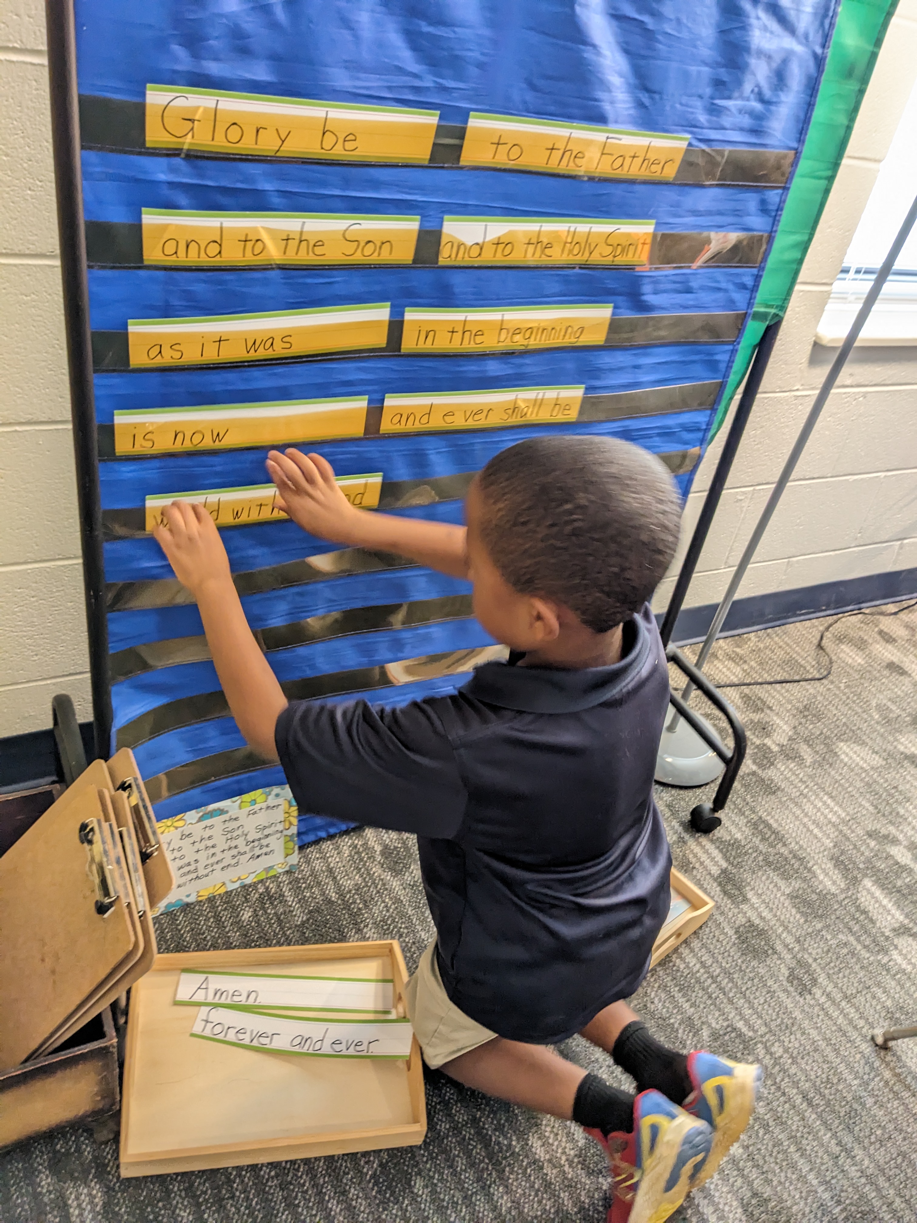 All children ages 3-12 can participate in hands-on learning with the Catechesis of the Good Shepherd, a Montessori-based style of catechesis that strives to instill a love of the sacred in each child that comes to the atrium, a seed of our Faith that the Holy Spirit will water and grow.