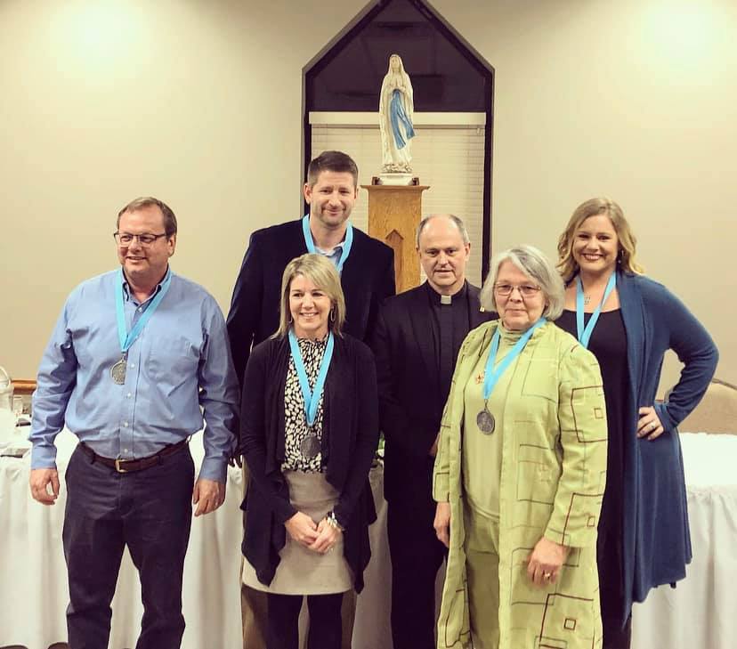 Here is a picture that we captured of all the previous & current recipients of the Mater Dei Award who were present at our 2020 celebration.