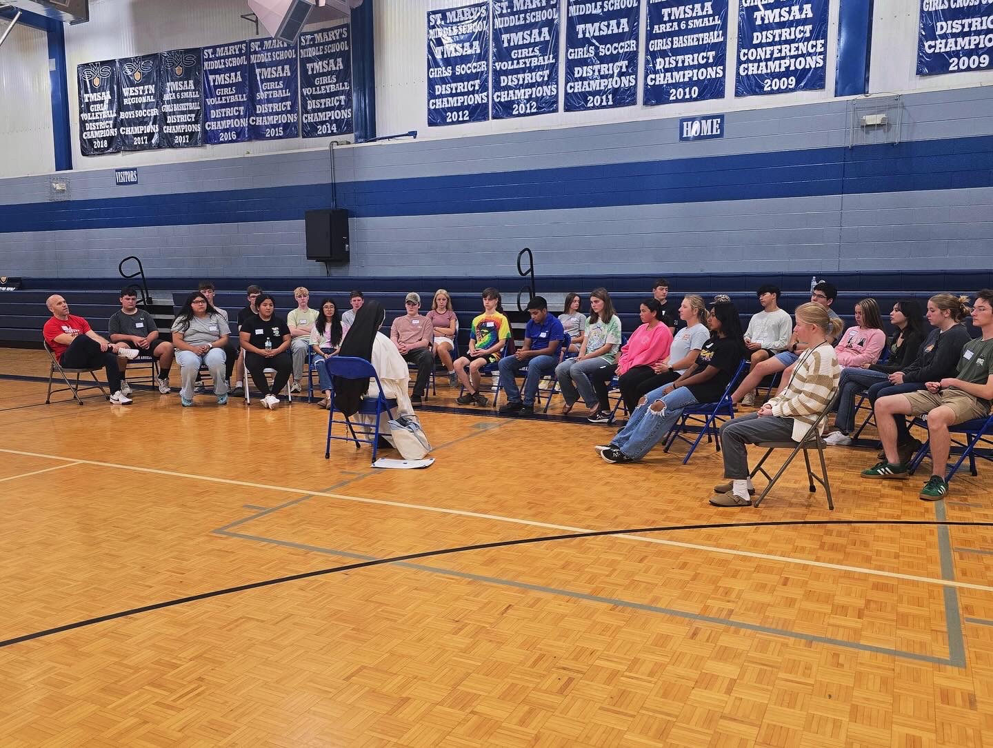 Through prayer, the Sacraments, real conversations, and service, we aim to form young disciples who are rooted in Christ and ready to live out the Faith with fidelity, zeal, and joy.