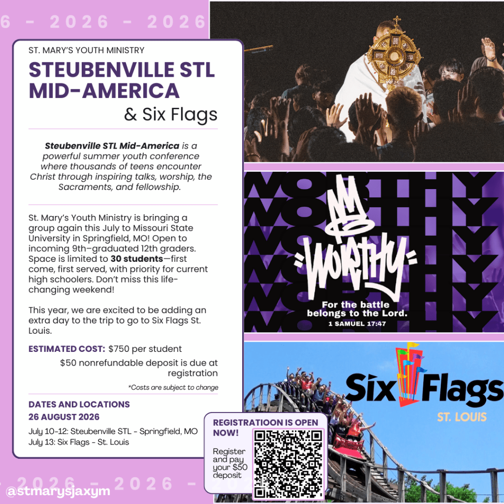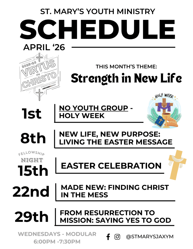 Director of Youth and Young Adults Ministry at faith@stmarys.tn.org or